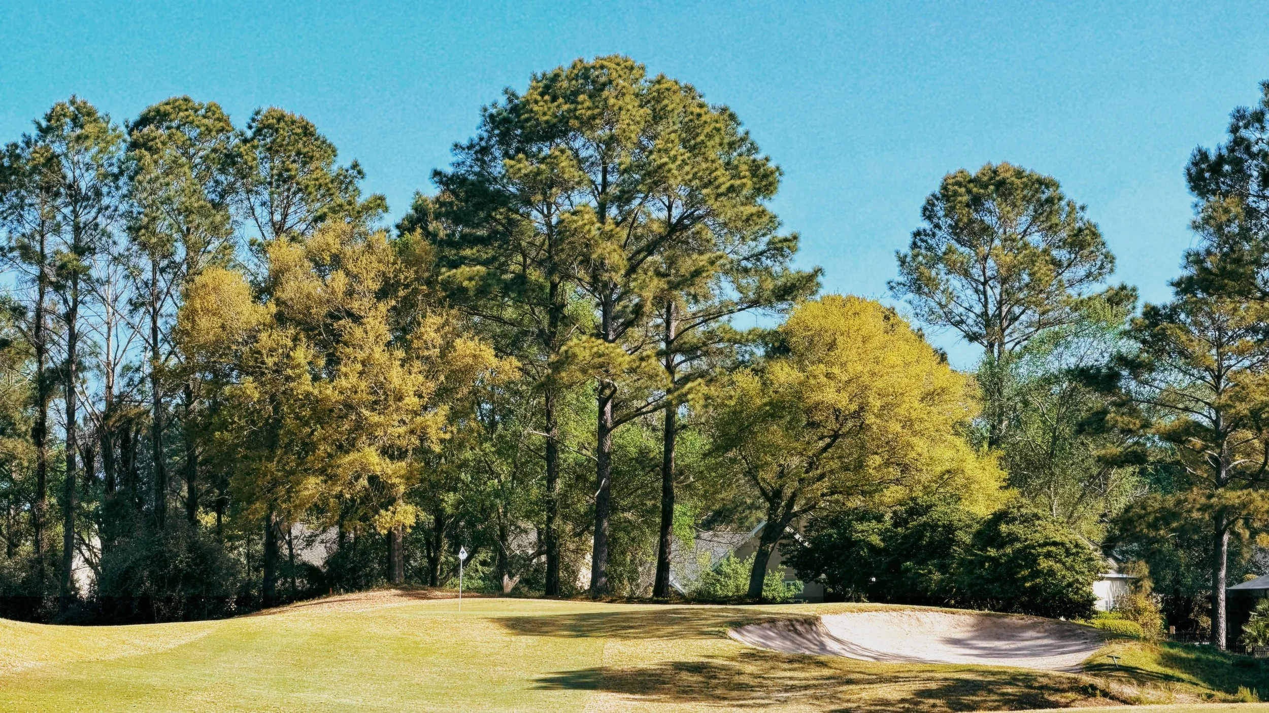 Springtime brings out one of the biggest visual highlights of the course: azaleas in bloom. Their color contrasts beautifully with the greens and the surrounding marsh landscape, creating a classic Southern golf experience.