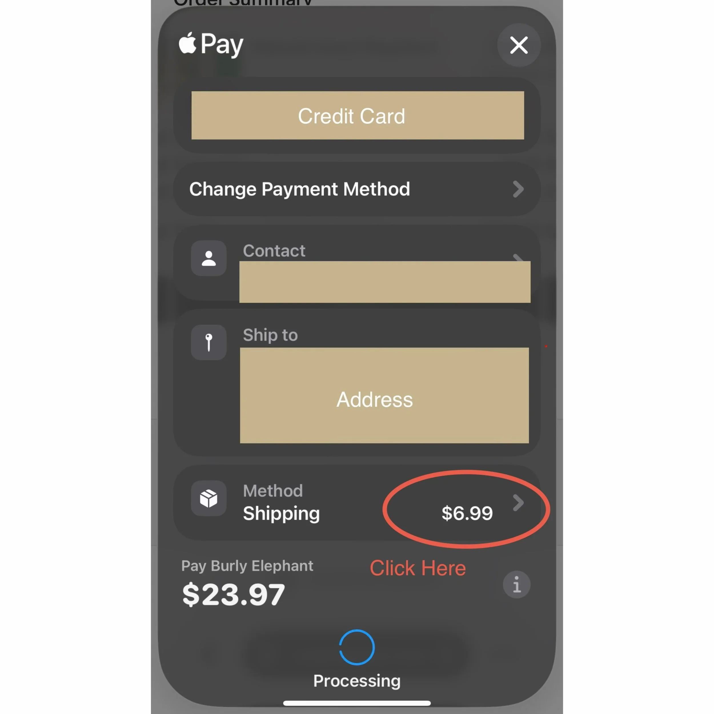 Clicking at Shipping Method will open on the method for the next screen. It is defaulting to $6.99 for outside Richmond Hill, GA 31324
